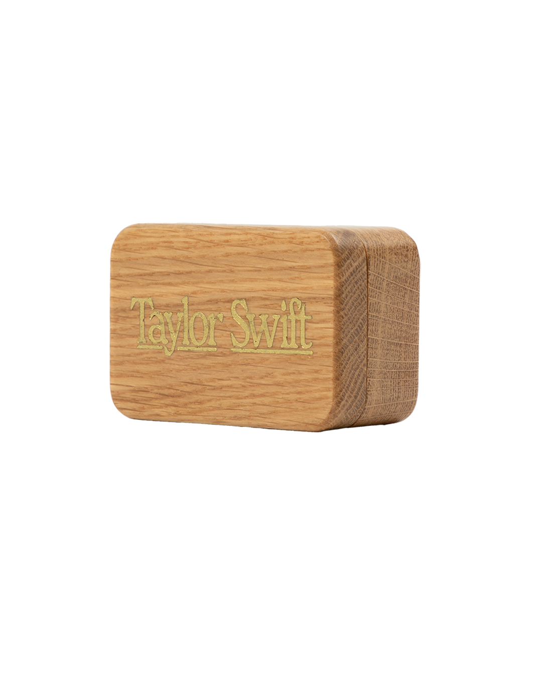 A set of three light blue guitar picks featuring the words Fake a Smile. All I Think About at Night. and He’s the Song in the Car printed on front with gold foil fluer-de-lis design and Taylor Swift printed on back. Includes wooden box featuring Taylor Swift engraved on top.